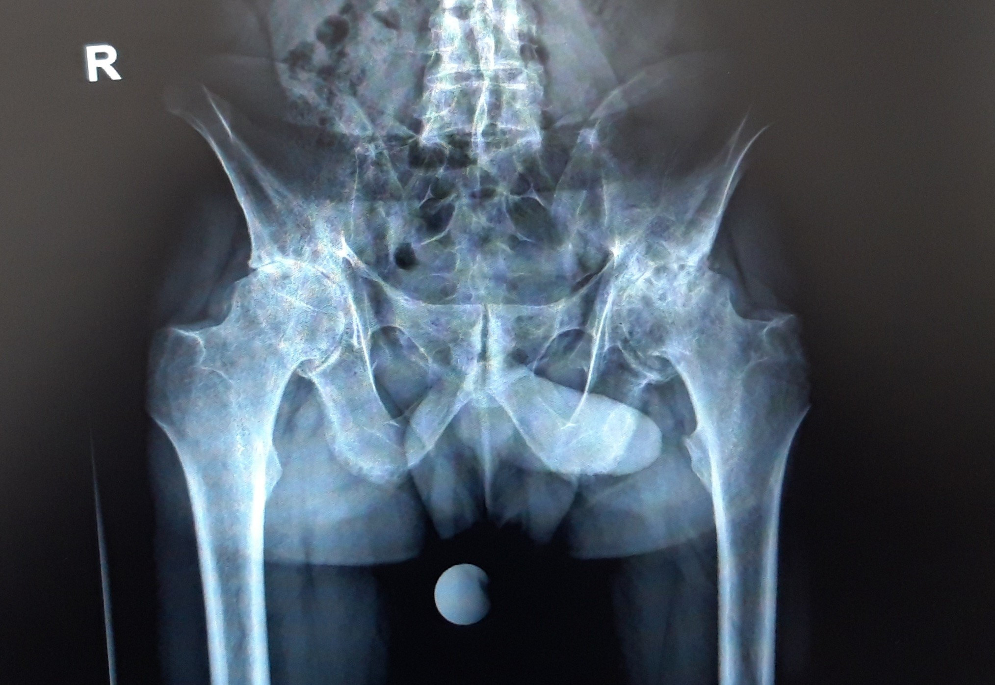Պացիենտի մոտ առկա էր արտահայտված ցավային համախտանիշ: Վեց ամսվա տարբերությամբ կատարվեց զույգ հոդերի պրոթեզավորում: