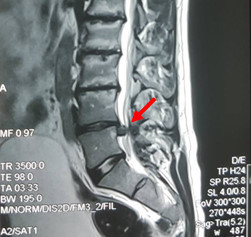 Հետաքրքրաշարժ է, որ նախքան վիրահատությունը ՄՌՏ հետազոտությամբ որևէ արտառոց պատկեր չէր արձանագրել և ախտորոշվել էր միջողային աճառի ճողվածք, ինչը պատկերված է ստորև: