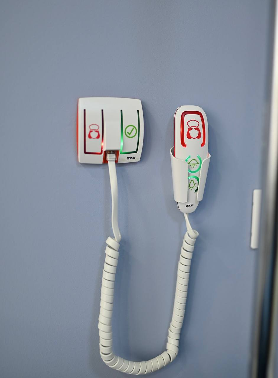 В случае жалоб или каких-либо проблем нет необходимости покидать палату, так как рядом с кроватью есть кнопка вызова с круглосуточным доступом, через несколько секунд после нажатия которой медработник будет находиться рядом с пациентом.